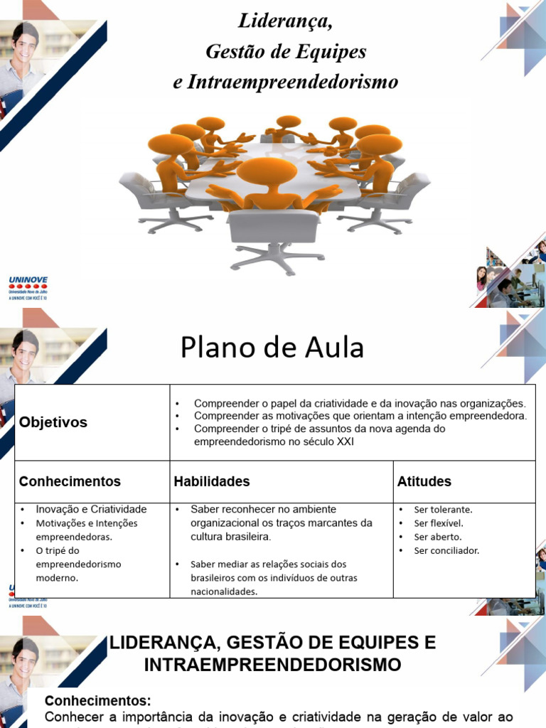 • Compreender o papel da criatividade e da inovação nas organizações.
