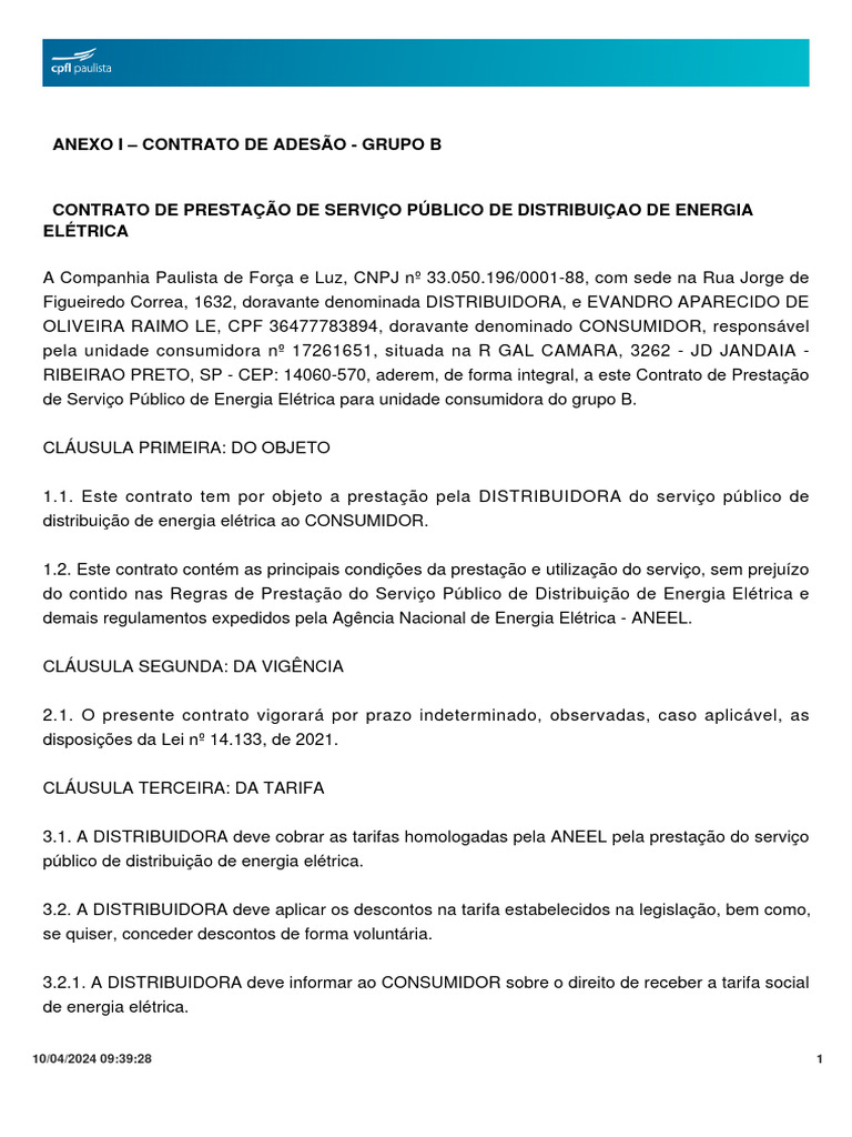 [Link] e da DISTRIBUIDORA: Companhia Paulista de Força e Luz