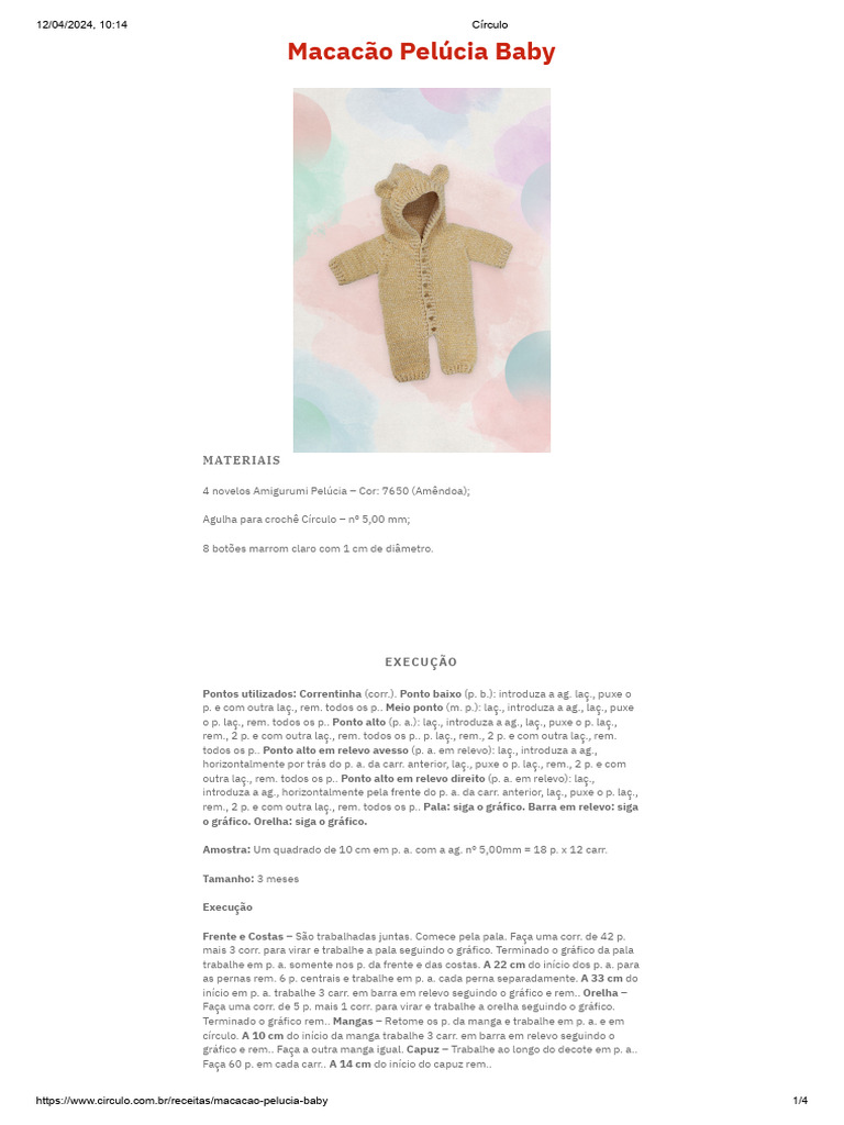 círculo. A 10 cm do início da manga trabalhe 3 carr. em barra em relevo seguindo o