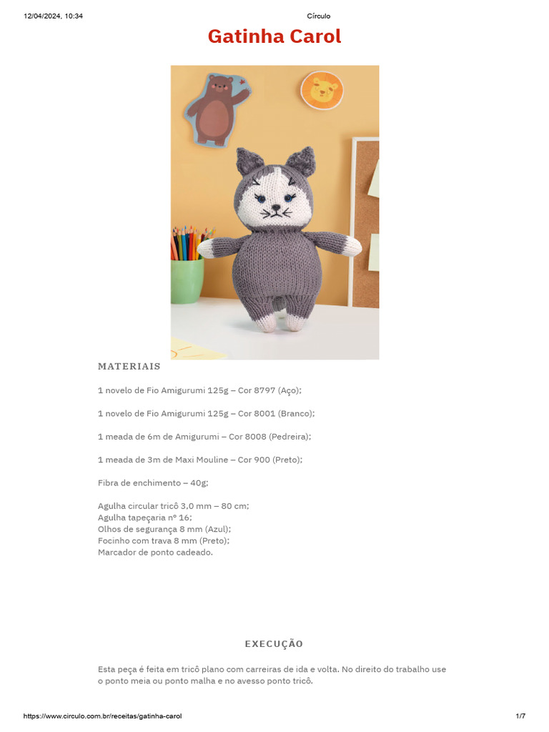 fechar as orelhas. Costurar as orelhas no alto da cabeça da gatinha, deixando a parte