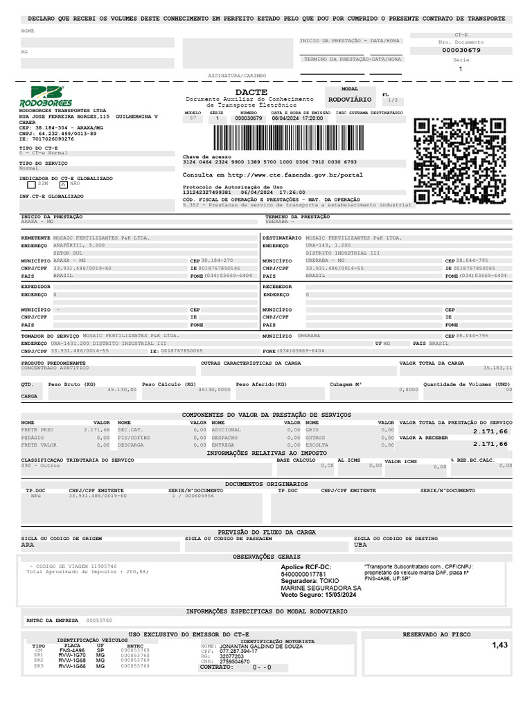931240007569295 06/04/2024 [Link] MDFe31240464232499001389580010000304561000304560