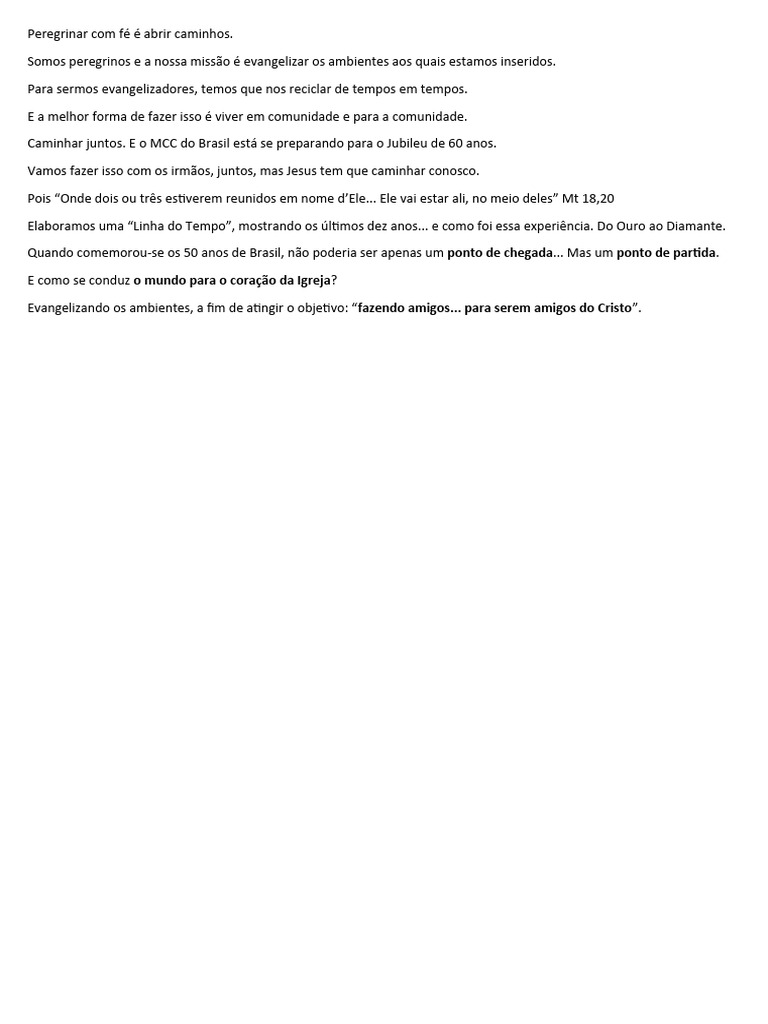 Caminhar juntos. E o MCC do Brasil está se preparando para o Jubileu de 60 anos.