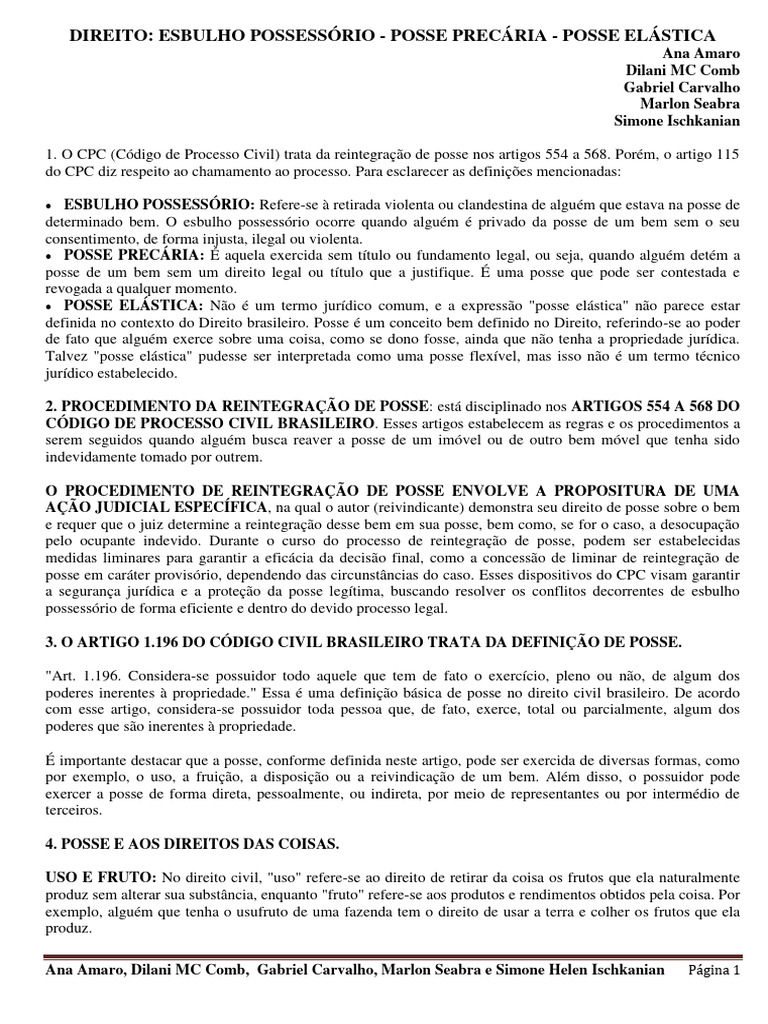 poderes inerentes à propriedade." Essa é uma definição básica de posse no direito civil brasileiro. De acordo