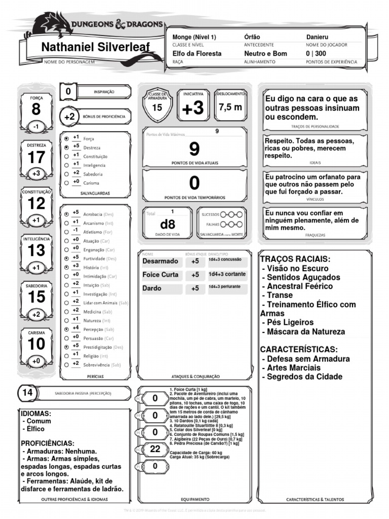 Nathaniel Silverleaf Elfo da Floresta Neutro e Bom 0 | 300