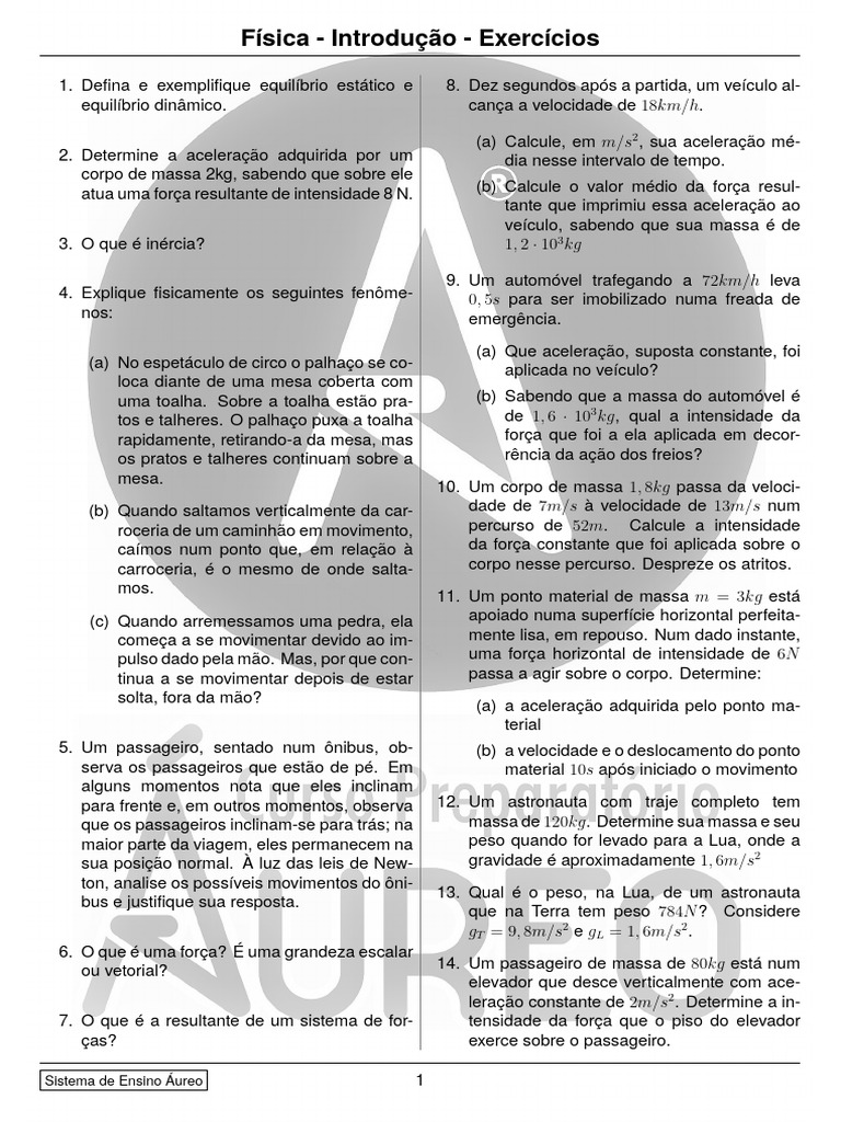 1. Defina e exemplifique equilíbrio estático e 8. Dez segundos após a partida, um veículo al-