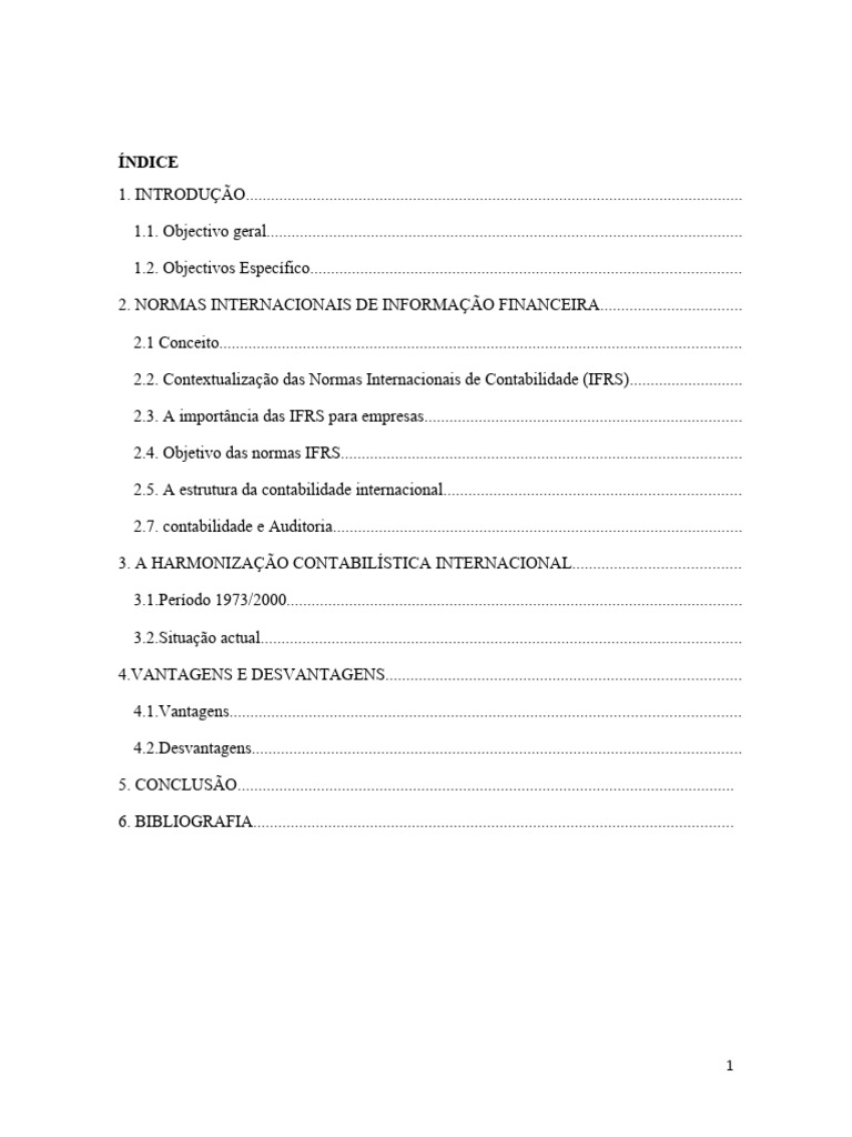 O objectivo geral do trabalho é avaliar as Normas Internacionais de Informação Financeira