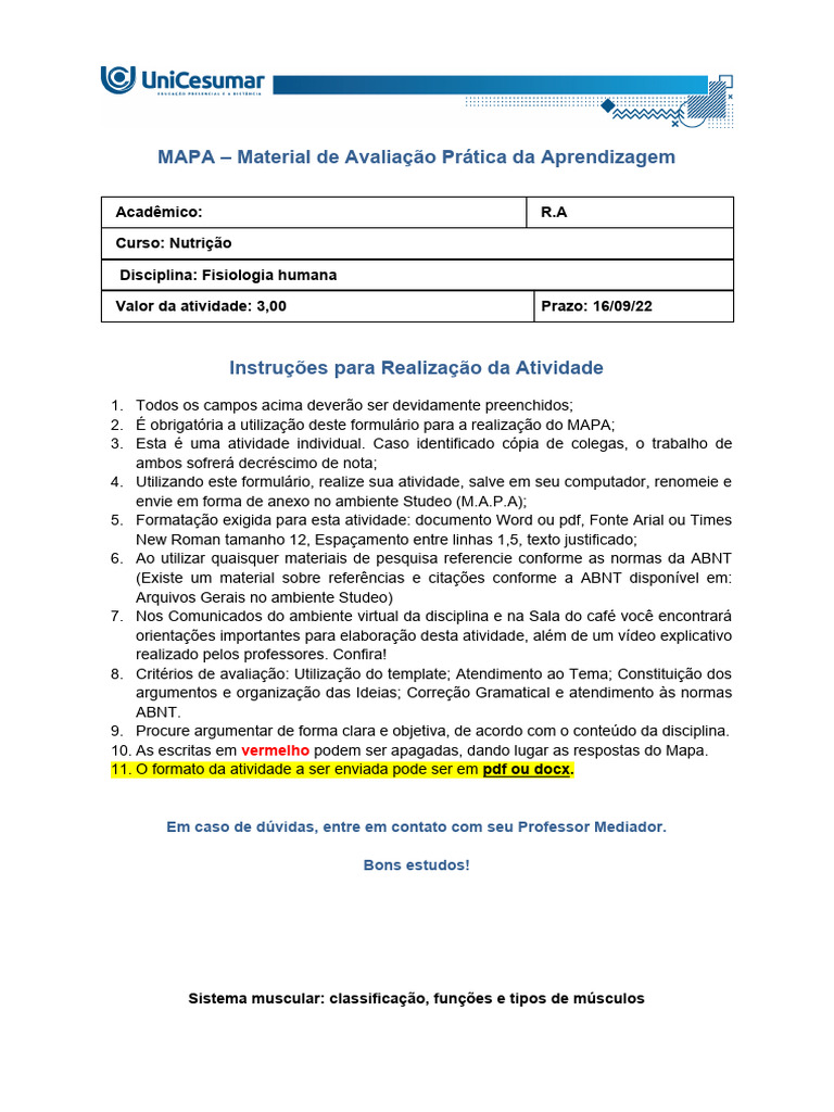 11. O formato da atividade a ser enviada pode ser em pdf ou docx.