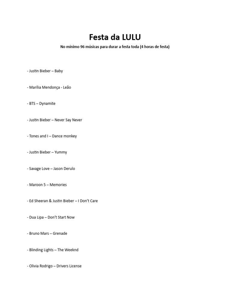 No mínimo 96 músicas para durar a festa toda (4 horas de festa)