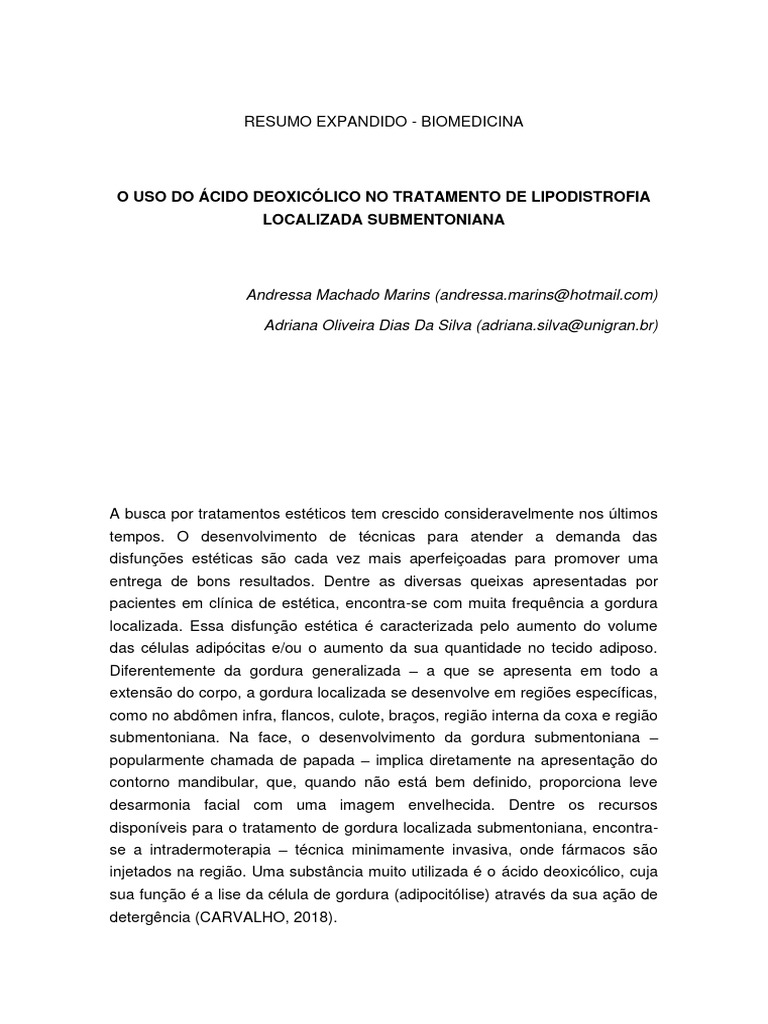 SANTOS, W. J. D. S. et al. Ácido deoxicólico como alternativa para lipólise
