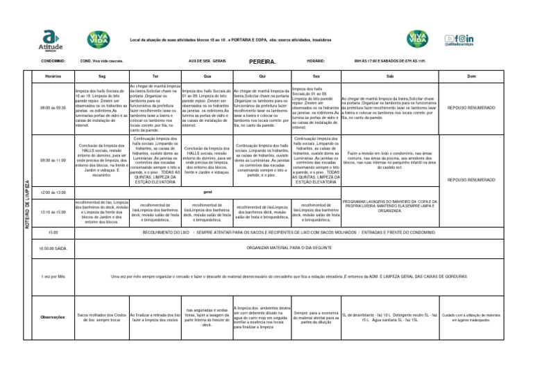 CONDOMINIO: COND. Viva vida caucaia. AUX DE SER. GERAIS PEREIRA. HORÁRIO: 08H ÁS 17:00 E SABADOS DE 07H ÁS 11H.