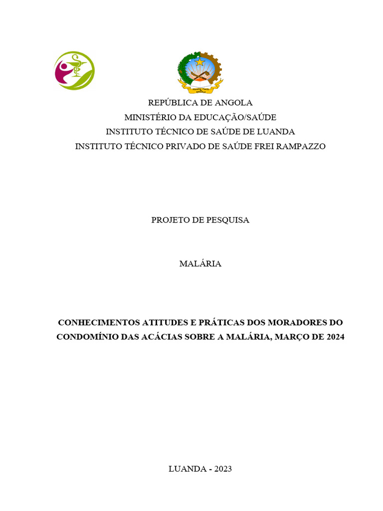 práticas dos moradores do condomínio das acácias sobre a malária, março de 2024, fez-se o