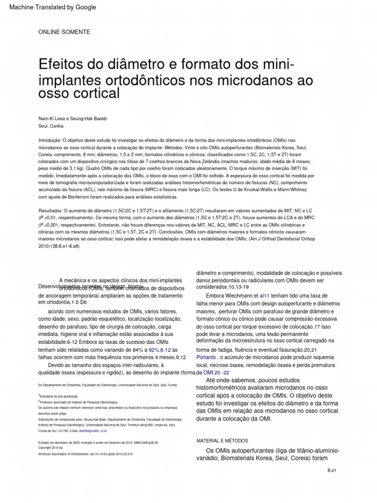 maiores microdanos ao osso cortical; isso pode afetar a remodelação óssea e a estabilidade dos OMIs. (Am J Orthod Dentofacial Orthop