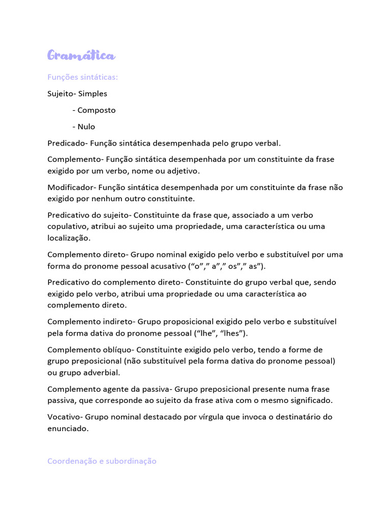 Complemento- Função sintática desempenhada por um constituinte da frase