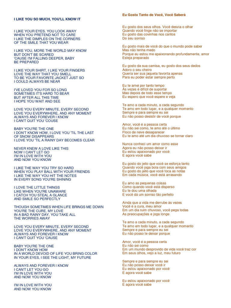 Eu Gosto Tanto de Você, Você Saberá