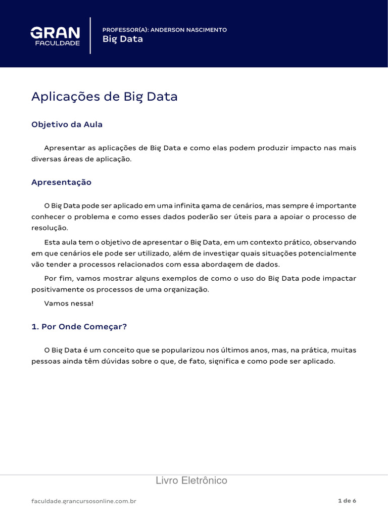Apresentar as aplicações de Big Data e como elas podem produzir impacto nas mais
