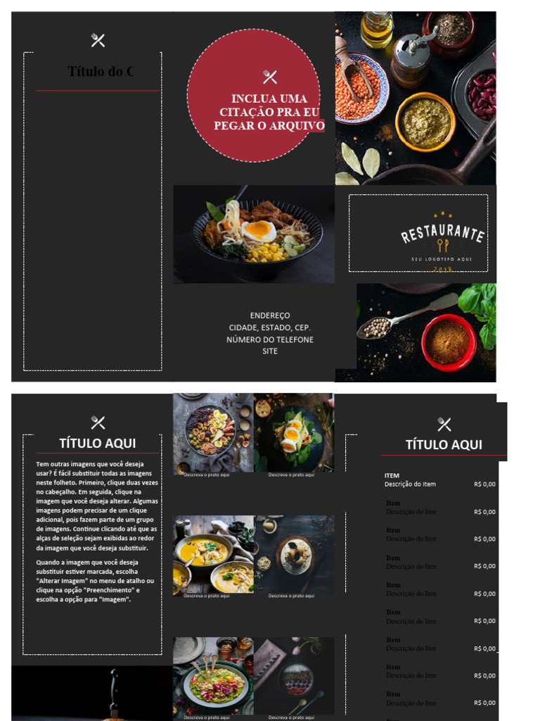 usar? É fácil substituir todas as imagens Descreva o prato aqui Descreva o prato aqui ITEM