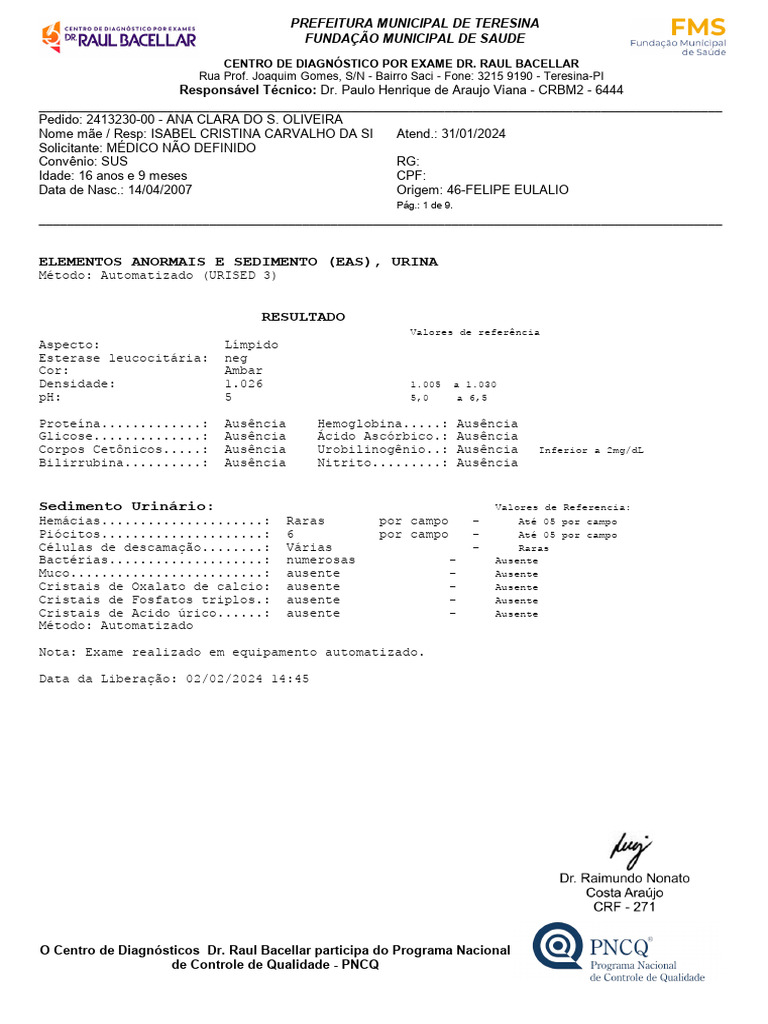 Data Coleta: 01/01/2024 11:06:0 Data da Liberação: 01/02/2024 14:47