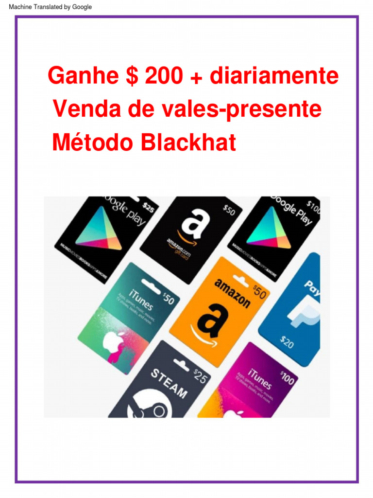 Nota: Os cartões-presente aqui são obtidos através de métodos blackhat e você só pode usar bitcoin para