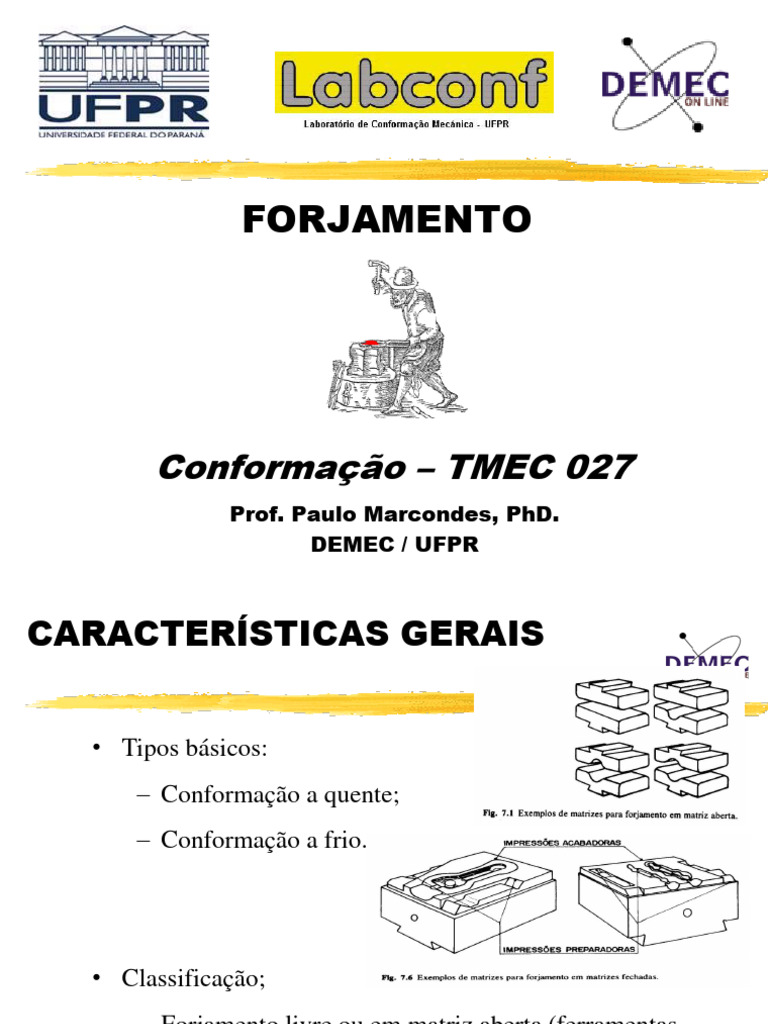 – Forjamento livre ou em matriz aberta (ferramentas