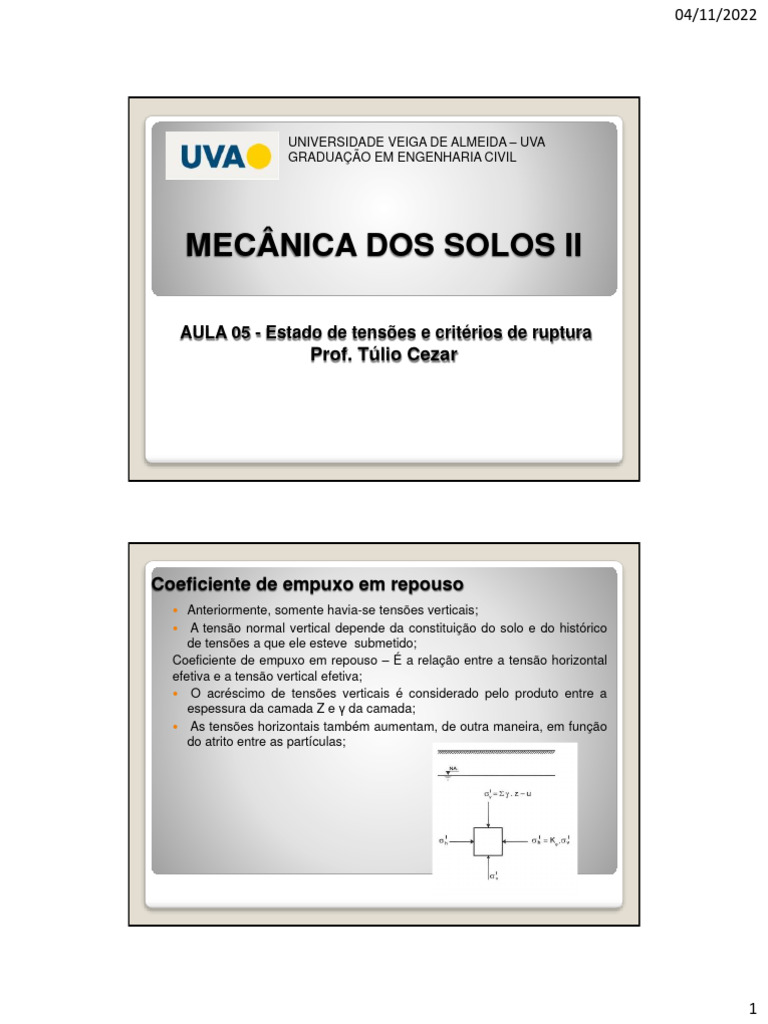 sendo c a coesão, f o coeficiente de atrito σ tensão existente no plano de cisalhamento) ;