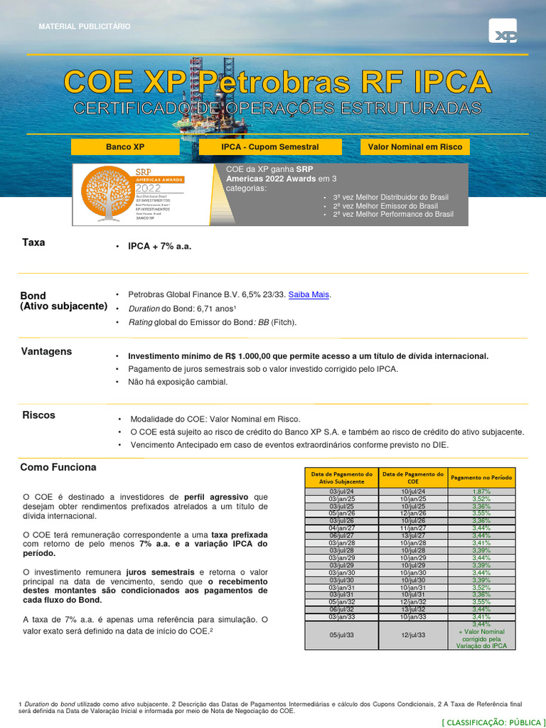 COE XP Petrobras RF IPCA