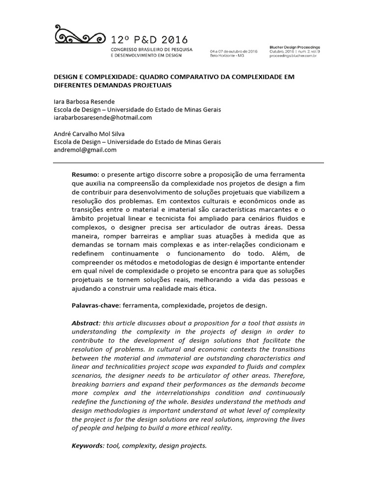 Palavras-chave: ferramenta, complexidade, projetos de design.