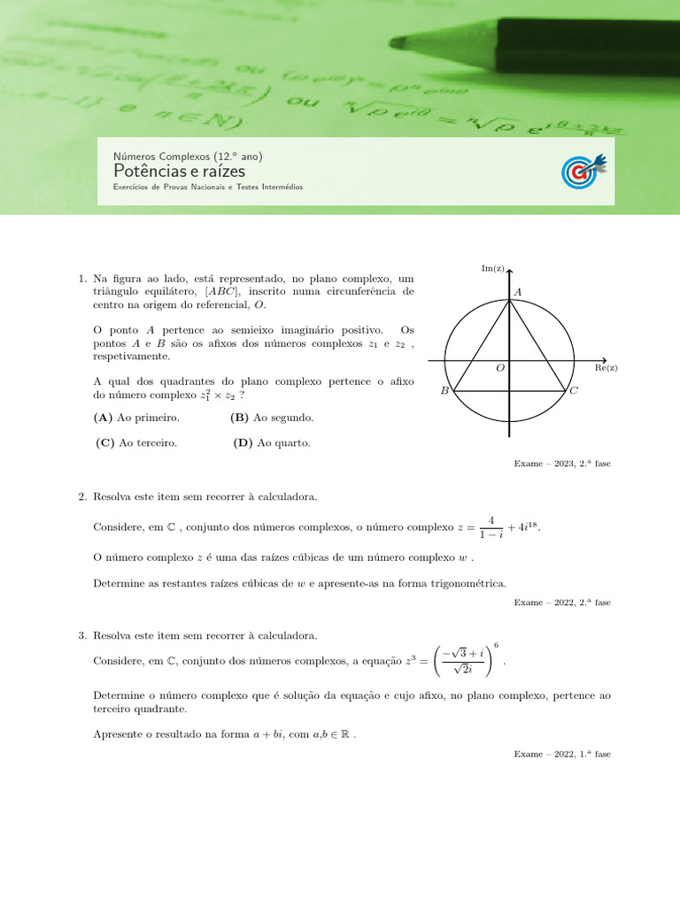 40. De dois números complexos, z1 e z2 , sabe-se que um argumento de z1 é e que o módulo de z2 é 3 2.