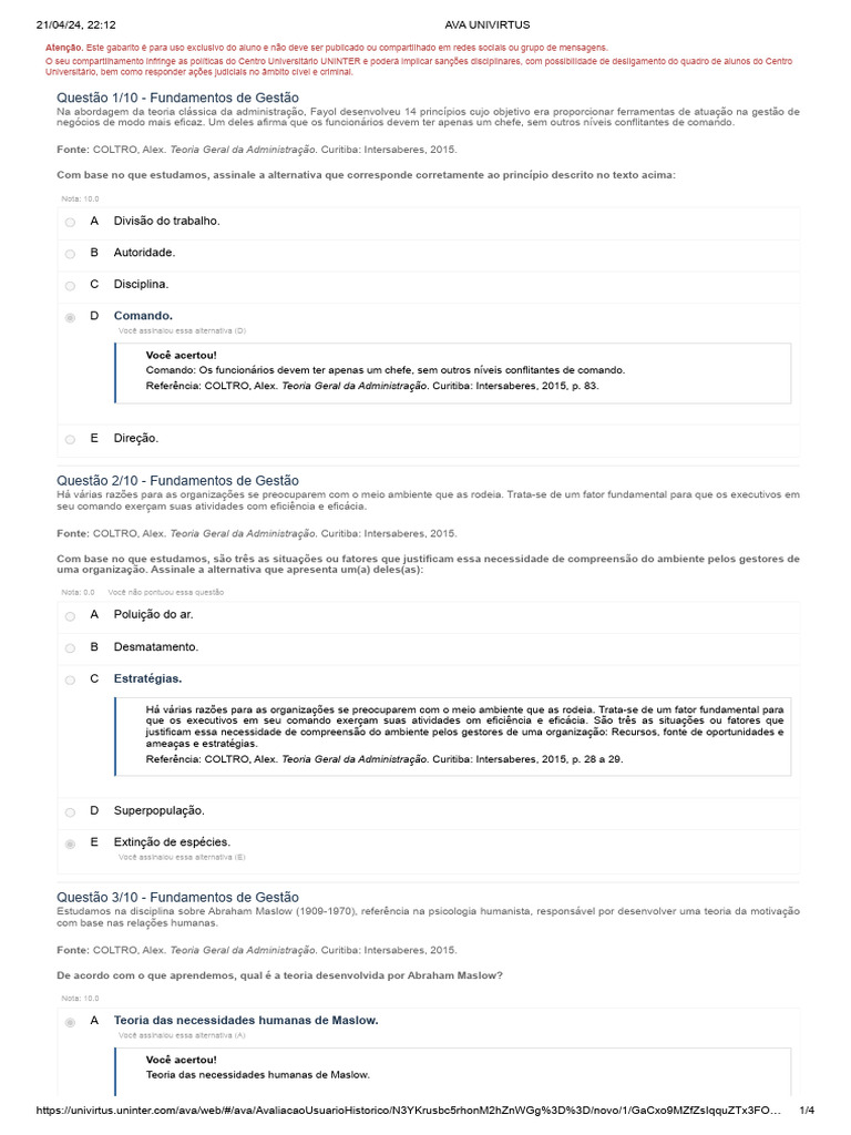 Referência: COLTRO, Alex. Teoria Geral da Administração. Curitiba: Intersaberes, 2015, p. 28 a 29.