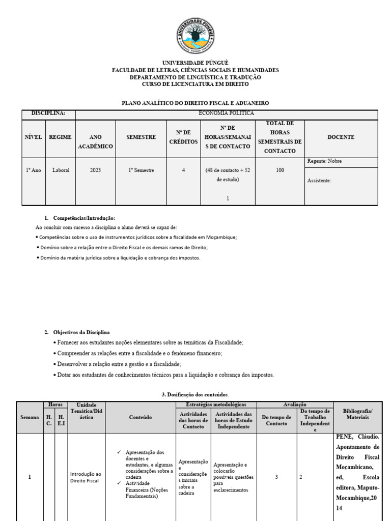 PLANO ANALÍTICO DO DIREITO FISCAL E ADUANEIRO