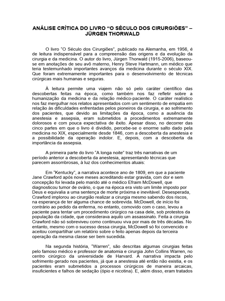 cirurgia e da medicina. O autor do livro, Jürgen Thorwald (1915-2006), baseou-