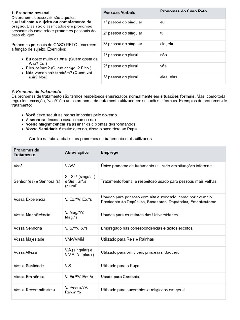 pessoais do caso reto e pronomes pessoais do