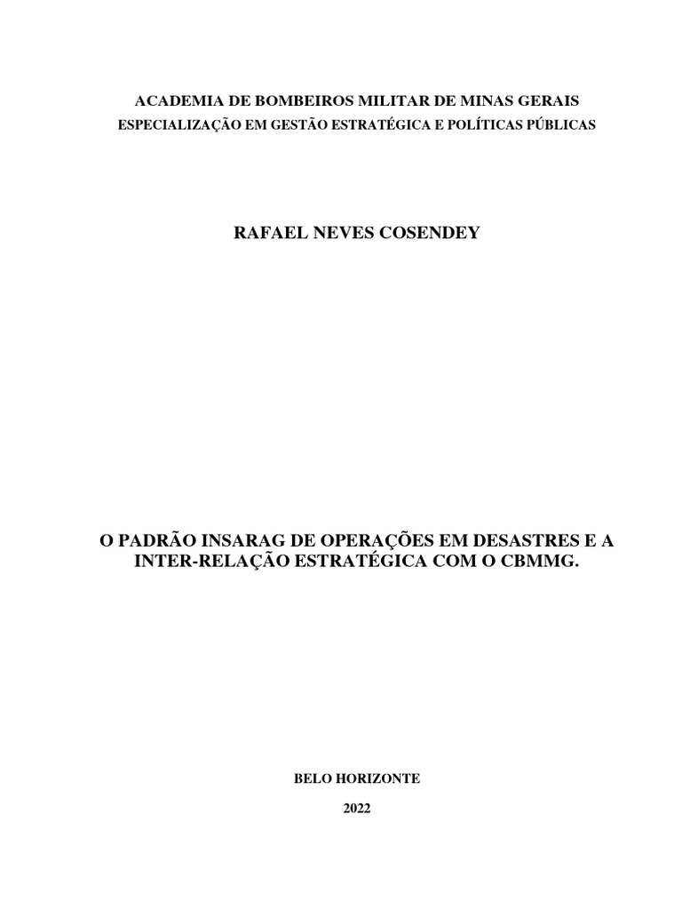 Palavras-chave: operações em desastres; resposta aos desastres; INSARAG; CBMMG;