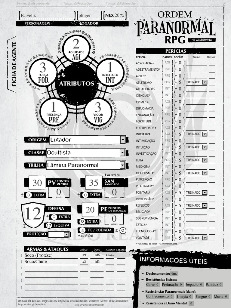 CLASSE Ocultista INVESTIGAÇÃO INT + 0