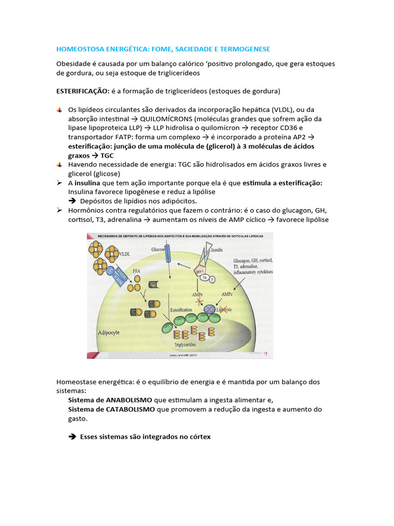 HOMEOSTOSA ENERGÉTICA: FOME, SACIEDADE E TERMOGENESE