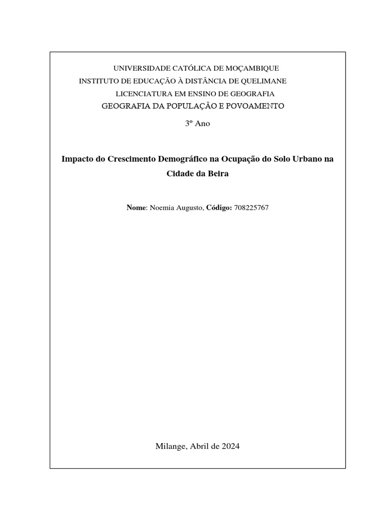 Impacto do Crescimento Demográfico na Ocupação do Solo Urbano na Cidade da Beira.