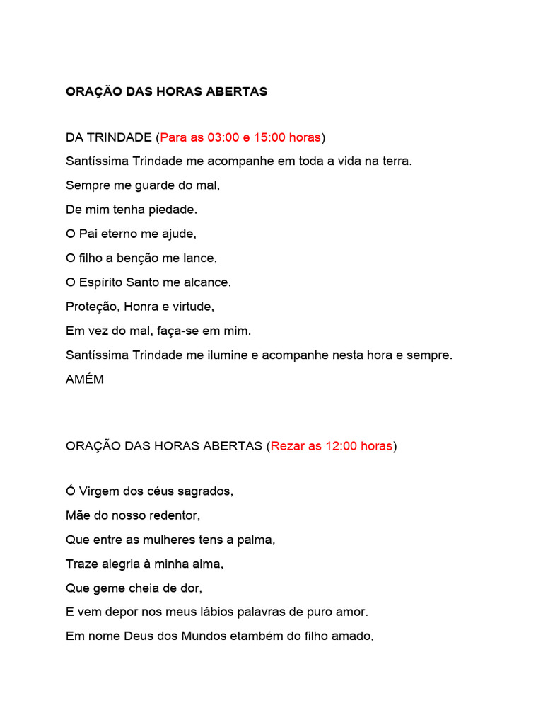 ORAÇÃO DAS HORAS ABERTAS (Rezar as 12:00 horas)
