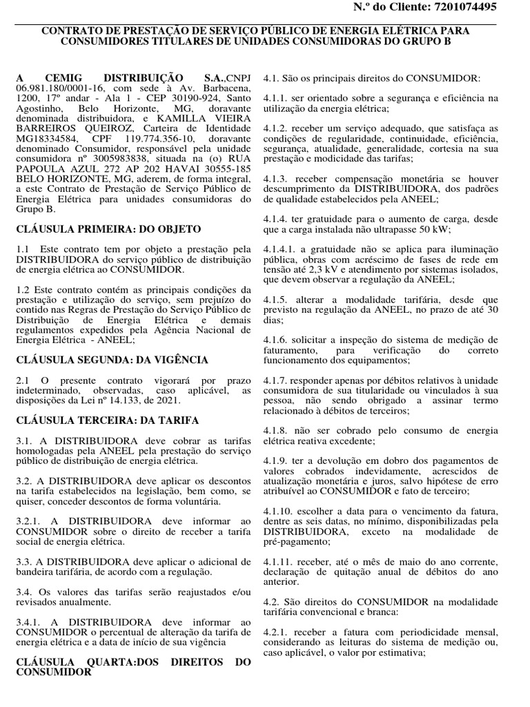 A CEMIG DISTRIBUIÇÃO S.A.,CNPJ 4.1. São os principais direitos do CONSUMIDOR: