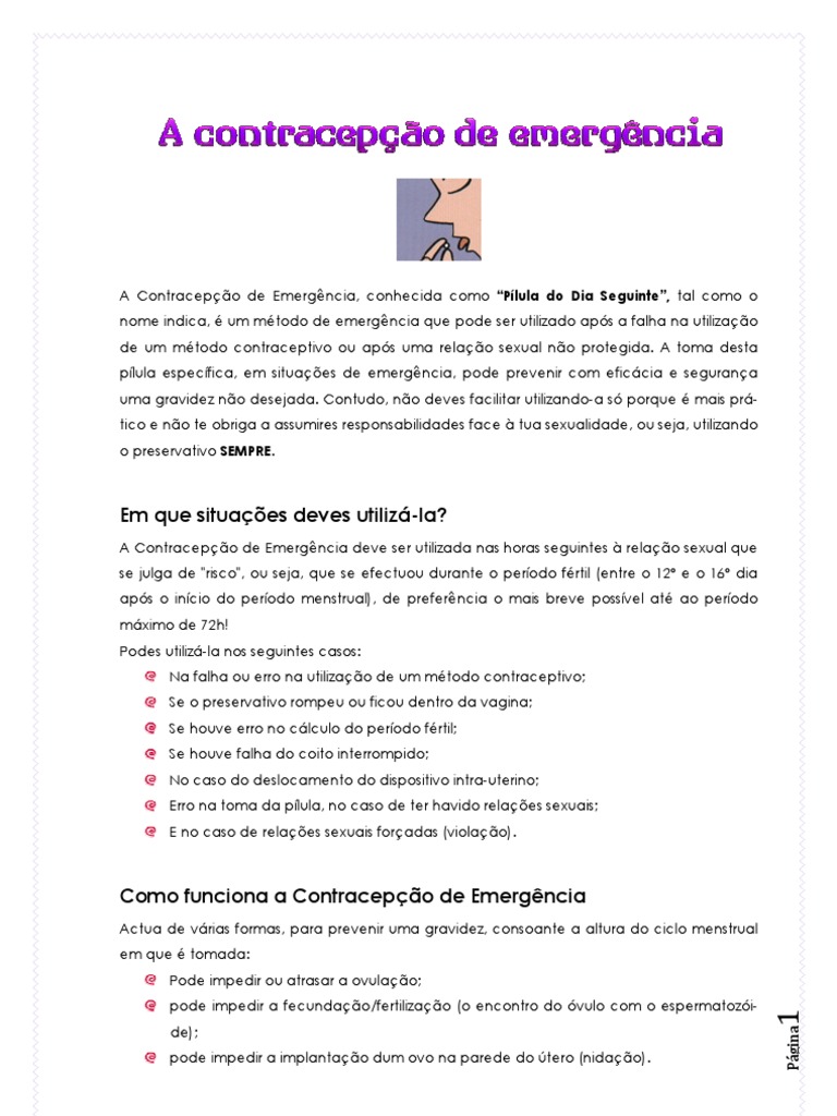 também dores de cabeça, tensão mamária ou retenção de líquidos. Uma boa estratégia para reduzir as náuseas é tomares a pílula com a comida ou à hora de deitar. A toma de um anti-émetico (anti enjoos) antes de iniciares a Contracepção de Emergência também é uma boa forma de diminuir as náuseas. Este efeitos desencorajam também a sua utilização como forma de contracepção habitual, aliás é uma Contracepção de Emergência como o próprio nome indica.