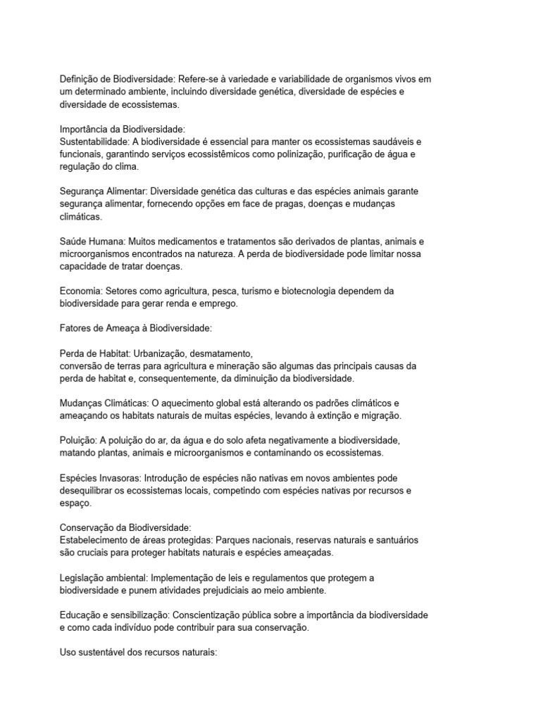 Definição de Biodiversidade: Refere-se à variedade e variabilidade de organismos vivos em