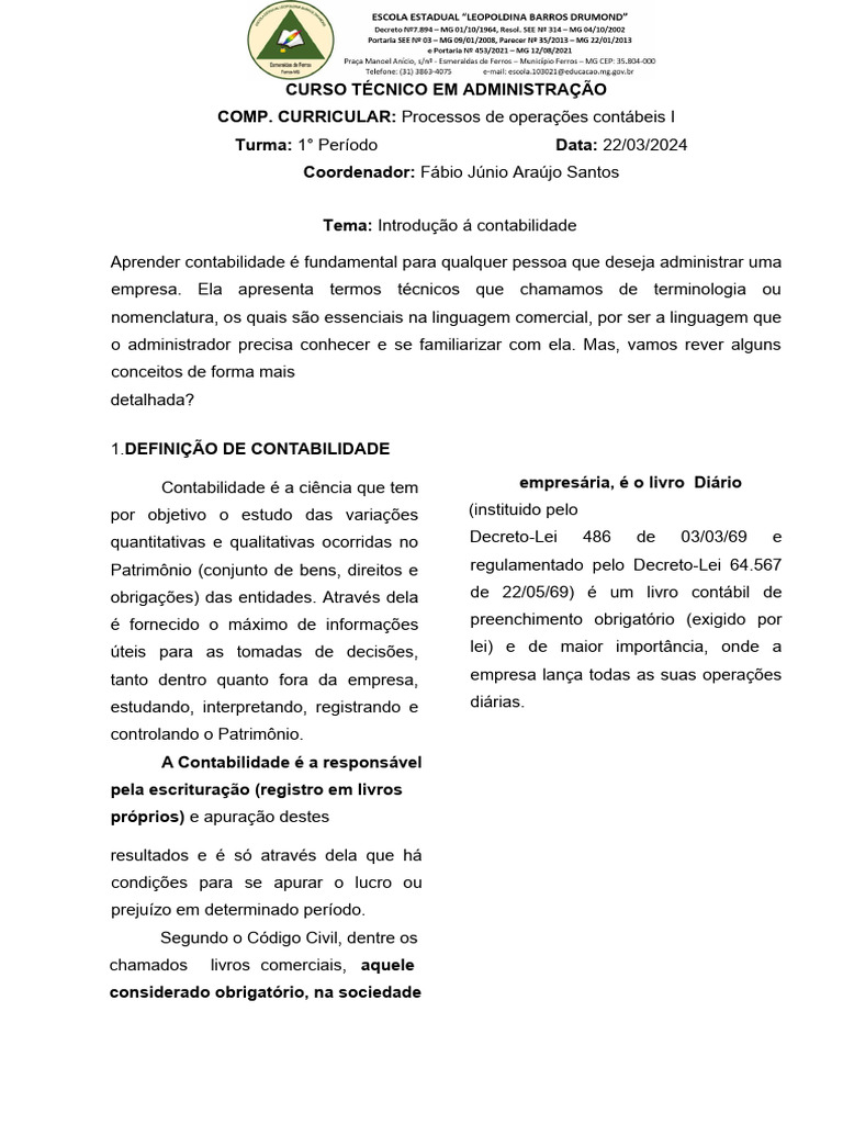 Contabilidade é a ciência que tem empresária, é o livro Diário