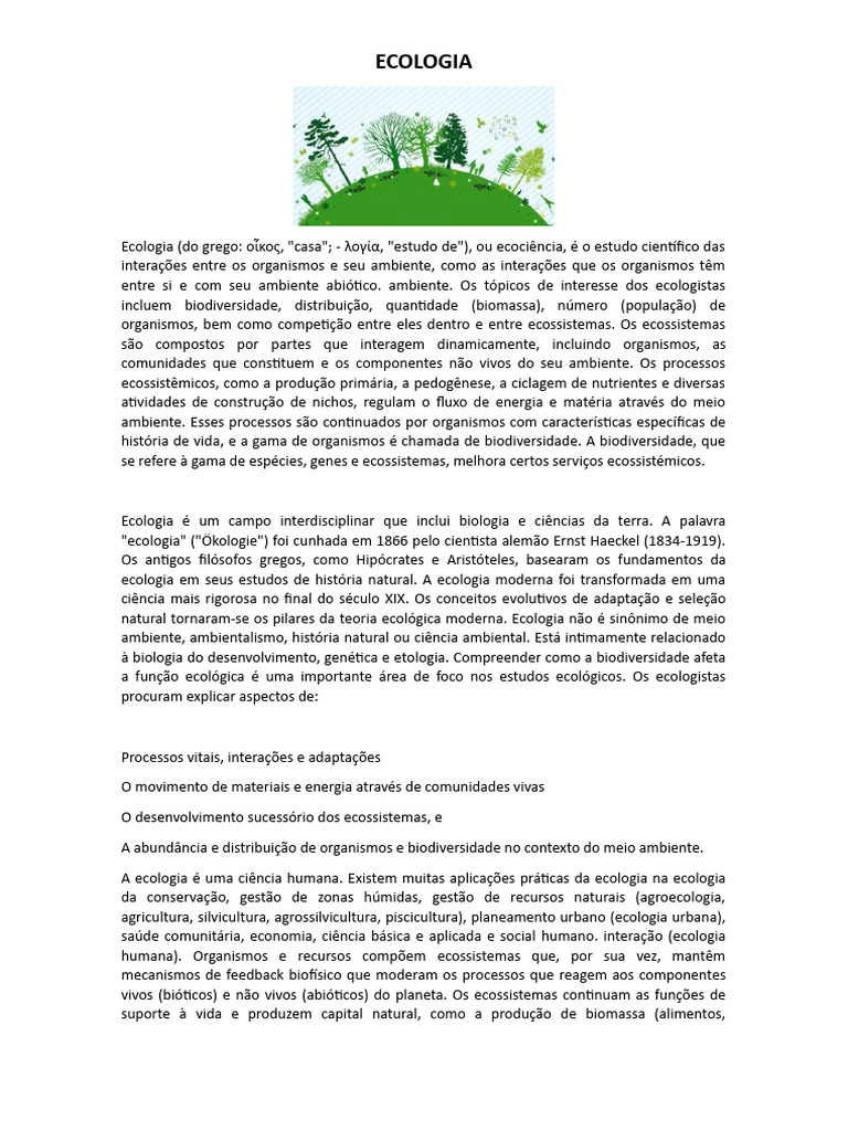 biosfera em geral. Estes últimos, porém, são os objetos de estudo específicos da ecologia. A