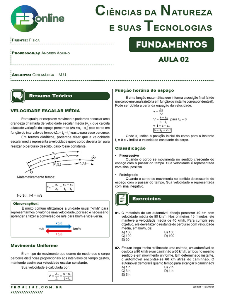 representarmos o valor de uma velocidade, por isso é necessário 01. O motorista de um automóvel deseja percorrer 40 km com