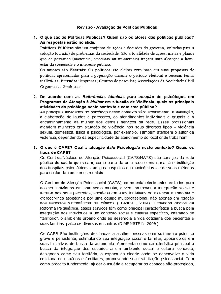 3. O que é CAPS? Qual a atuação da/o Psicóloga/o neste contexto? Quais os