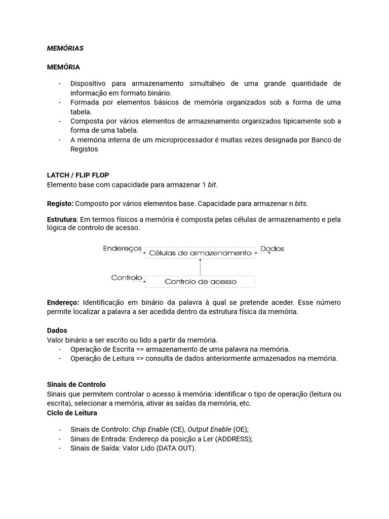Sinais que permitem controlar o acesso à memória: identificar o tipo de operação (leitura ou