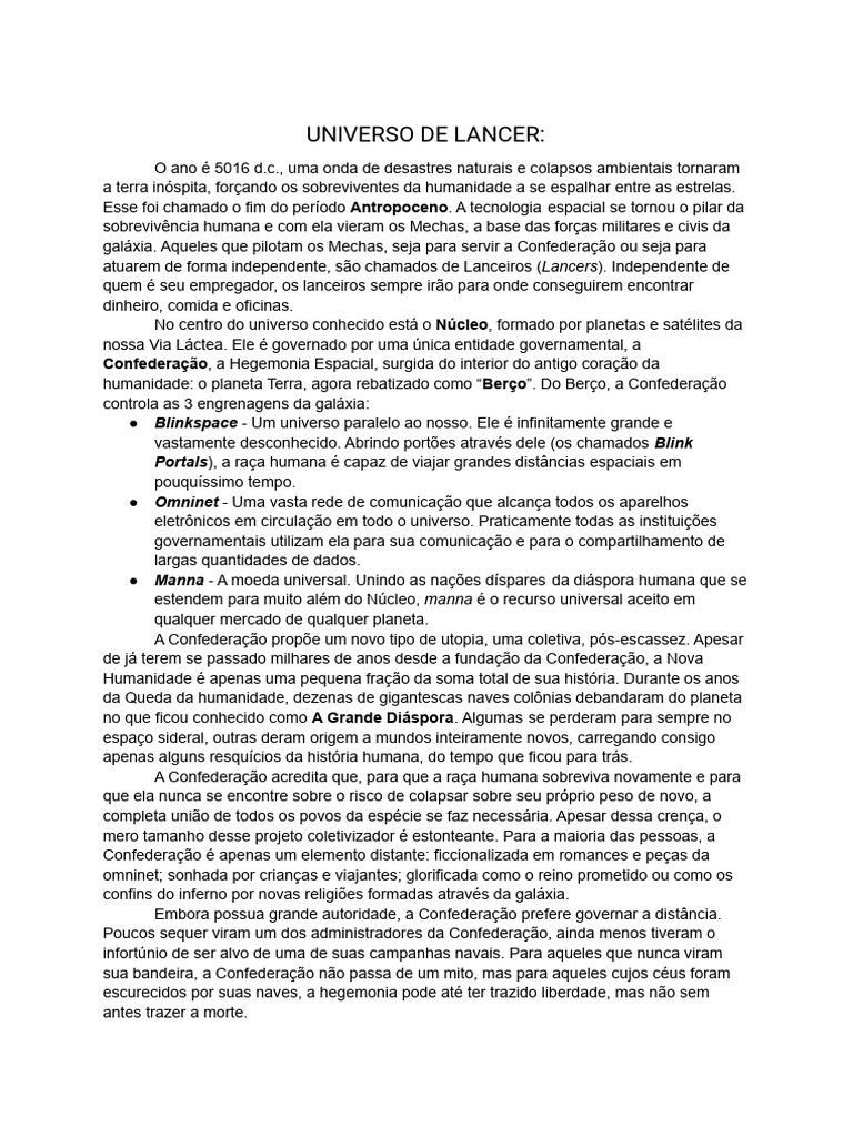 galáxia. Aqueles que pilotam os Mechas, seja para servir a Confederação ou seja para