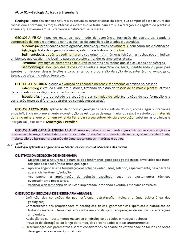 GEOLOGIA ECONOMIA: aplicação de princípios geológicos para o estudo do solo, rochas, água subterrânea