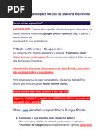 nossa planilha financeira, google sheets ou excel. Siga o passo a