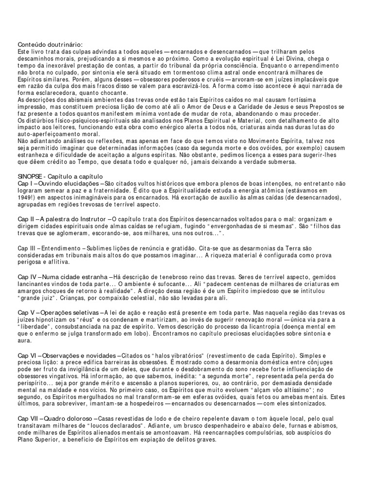 Xavier. Nesse livro, reporta como foi recolhido à Instituição Espiritual "Nosso Lar" (situada na psicosfera da cidade