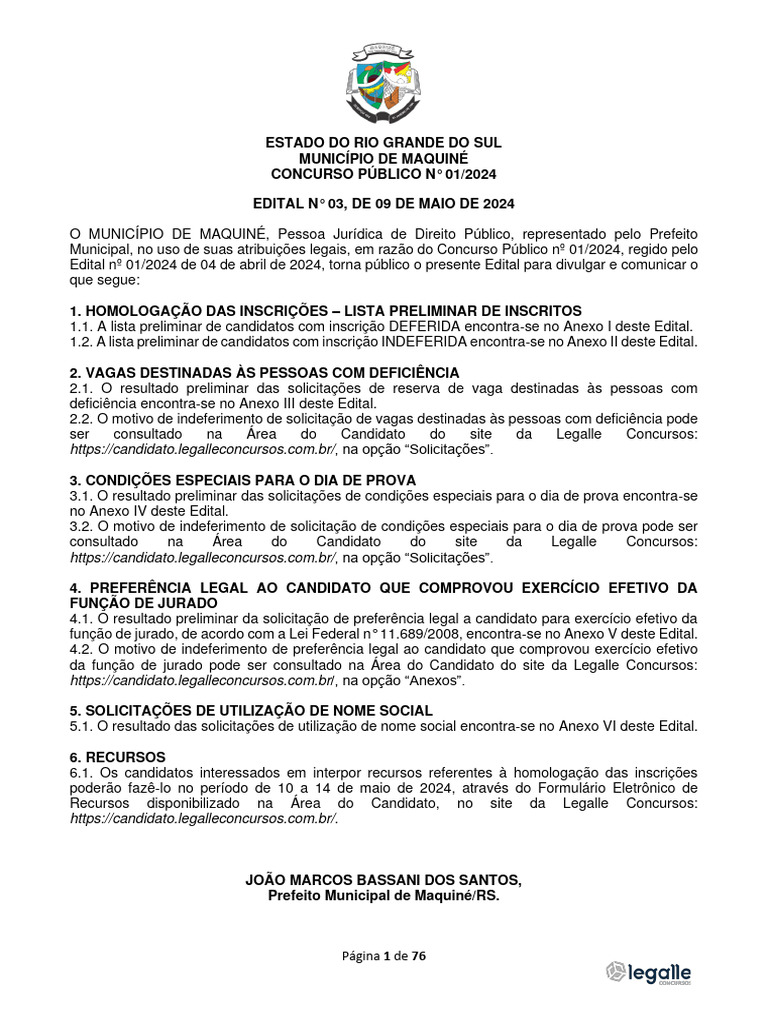 ser consultado na Área do Candidato do site da Legalle Concursos: