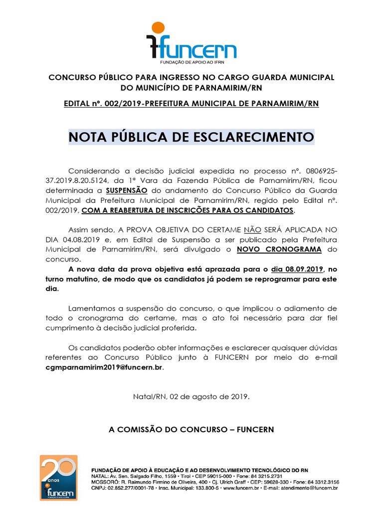 37.2019.8.20.5124, da 1ª Vara da Fazenda Pública de Parnamirim/RN, ficou